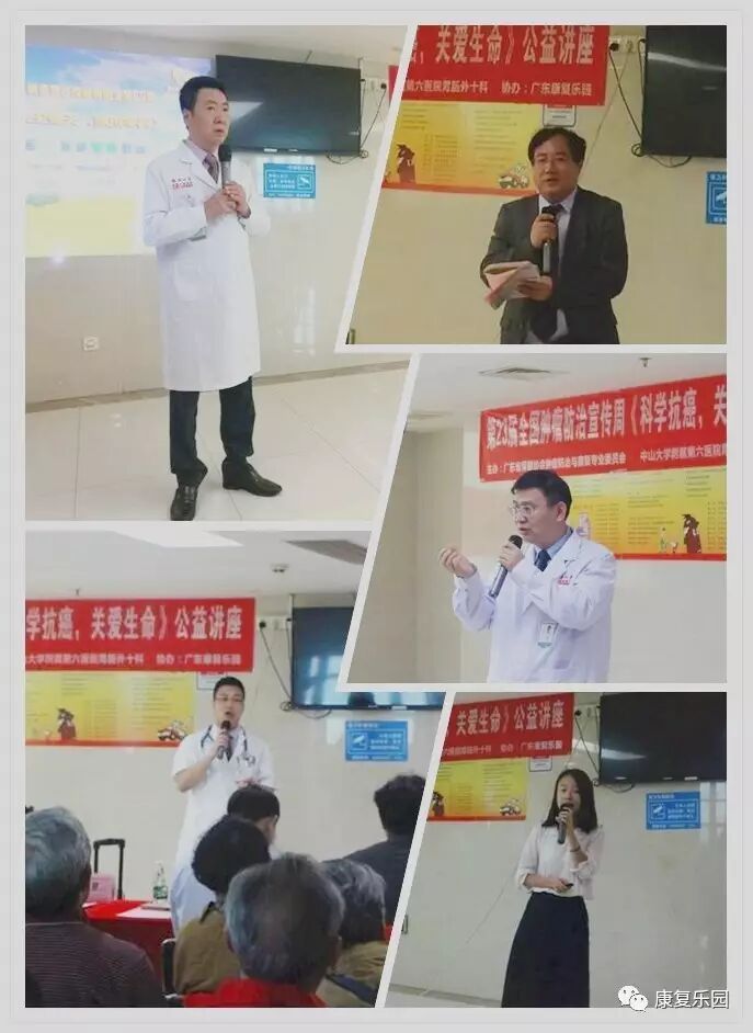 【珠江新闻报道】广州康复乐园携手中山六院举办“科学抗癌,关爱生命”公益讲座 2017年4月24日下午,广州康复乐园携手中山大学附属第六医院联合举办公益讲座。讲座在中山大学附属第六医院1号楼16楼胃肠科活动区举行,同时还特邀请 中山大学附属第六医院胃肠外科主任 林锋教授与 中山大学附属第六医院胃肠外十科主任医师、教授、研究生导师 杨祖立教授进行讲话.