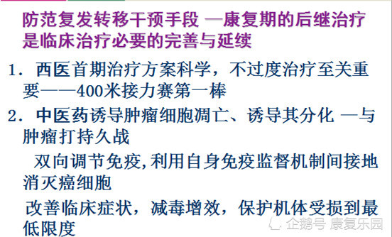 康复乐园始创于1998年,目前拥有2万名会员,是一家专业肿瘤康复服务机构,主要以完善和延续肿瘤患者临床治疗结束后的后继治疗及康复为主,做医生以外的另一半工作。首创“权威西医+现代中医+非生物医学模式”于一体的三驾马车模式,始终致力于防范肿瘤复发转移。 |