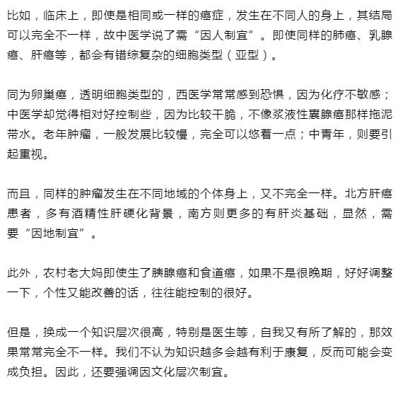 其次,要“因癌制宜”,不同特点的癌,需要的是完全不同的对策。