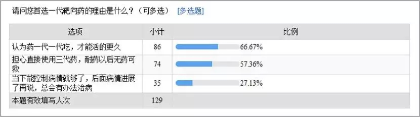 肺癌患者面对这场四分之一的生命赌局该如何选择?目前,在新诊断的EGFR突变阳性的非小细胞肺癌(NSCLC)患者中,至少有5种靶向药物可供选择,如一代药物厄洛替尼(特罗凯)、吉非替尼(易瑞沙)等,二代药物阿法替尼(吉泰瑞)、达克替尼,三代药物奥希替尼(泰瑞沙)。没有药是难题,药多了也犯愁,药物的选择给患者造成了巨大的困扰。 在觅健里我们见到大部分EGFR突变阳性的NSCLC觅友优先使用第一代靶向药治疗,产生耐药后更换第三代靶向药物或其他治疗手段。 觅友的选择不无道理,这是目前EGFR突变阳性晚期非小细胞肺癌患者的标准治疗。但随着三代靶向药物奥希替尼一线治疗被写入国际晚期肺癌治疗四大指南,如何选择一线治疗药物成为EGFR突变阳性晚期非小细胞肺癌患者不得不考虑的问题。 1 农夫:如果有时光机,我在一线治疗时就会选择第三代靶向药 觅健肺癌圈子名人“农夫”是一位IV期肺腺癌患者。他于2016年检测出EGFR突变阳性,一线选择一代靶向药治疗,出现耐药后更换二代靶向药,当疾病再次进展时,使用三代靶向药治疗。时至今日,第三代靶向药奥希替尼出现缓慢耐药,目前正在接受化疗。 如果有时光机,“农夫”表示会在一线治疗时直接用第三代靶向药。 “农夫”在接受觅健采访时直言,如果现在让他重新选择,他会在刚发现EGFR突变时直接使用泰瑞沙作为一线治疗。 最近,他从肺癌圈子中了解到一线使用泰瑞沙的中位无进展生存期达到18.9个月,算起来跟一代耐药后再使用三代药的中位无进展生存期差不多。这是他考虑一线使用泰瑞沙的主要原因。另一方面,由于在使用一代靶向药出现不良反应——腹泻,给他的生活带来极大的不便,但是使用第三代靶向药物时,不良反应明显小了很多。 “幸好我在一代药耐药后有T790M突变,可以用上三代靶向药。有些觅友没有T790M突变,甚至没有机会可以用三代药。”当谈到第三代药耐药后的解决方案时,经历过两次耐药的农夫比其他觅友看的更明白,他说不管怎么用药,都避不开这个坎。 农夫是一类觅友的代表,同时我们还在觅健中找到不同的声音。 2 小朱Rex:坚持1+3的治疗模式,我为生命计算的是个体生存的可能性 这位觅友在觅健上也被大家所熟知,他是小朱Rex,一位早期肺癌患者,通过手术治疗后无需接受辅助治疗,现处于康复阶段。就他个人而言,他更倾向选择另外一种治疗方案。 小朱Rex坚持1+3的治疗模式,先使用一代靶向药,耐药后使用三代药物治疗,他做出该选择是基于对肺癌的了解。小朱认为:“晚期肺癌目前无法治愈,我们只能够尽量延长生存期”、“1+3治疗模式的生存期可能会更长,每种靶向药都会耐药,由于个体差异性,产生耐药的时间或长或短,要看运气。”他为生命计算的是个体生存的可能性,不是肺癌群体的中位生存期。 在小朱Rex认识的觅友中,有一位患者通过控制药量或增加用药种类(联合方案)来治疗也达到了不错的生存获益。但是,他也清楚地知道在用药的过程中有许多不可控的因素,希望觅友们能避免风险较大的行为。 3 觅健调研发现:生存期是觅友用药选择的首要因素 为了了解大部分EGFR阳性NSCLC觅友们一线治疗时选择药物的倾向和顾虑,我们发起了一项小调查。 图片来源:调研结果 从调查结果中,我们了解到生存期是觅友用药选择的首要因素。在不考虑经济条件情况下,一线选择一代靶向药物治疗的觅友仍略高于三代靶向药物,这些觅友认为靶向药要一代一代吃,才能获得更长的生存期。除此之外,还有不少的觅友担心耐药后的治疗方案,害怕耐药后出现无药可用的情况。 “1+3”的治疗模式是否真如觅友们所认为的那样,能带来更好的生存获益?我们尝试从临床研究中寻找答案。 4 一线使用奥希替尼,两大关键生存数据均翻倍延长 FLAURA是一项随机、双盲的III期临床研究,用来评价奥希替尼或标准治疗(一代EGFR-TKI:厄洛替尼、吉非替尼)一线治疗EGFR敏感突变的晚期非小细胞肺癌的有效性及安全性。研究结果显示,与一代EGFR靶向药相比,奥希替尼的中位无进展生存期更长(18.9vs10.2个月)、客观缓解率更优(80%vs76%)。刷新了既往所有一线治疗的记录,疾病进展或死亡风险显著降低54%。FLAURA研究结果告诉我们在一线治疗中,三代药物完胜一代药物,拉长了将近两倍无疾病进展生存期。 奥希替尼不仅仅在无疾病进展生存期中表现优异,它的5年生存率数据更是崭露头角,在最近的ASCO(美国临床肿瘤学会)中公布了最新的数据,基于观察到的FLAURA研究OS(总生存期)统计数据建立的预测模型进行分析和预估的结果显示:奥希替尼对比标准的一代靶向药的5年生存率翻倍(31.1%比15.5%)。 我们刨根问底,假设一代靶向药耐药后,我有T790M突变,1+3的生存期会不会不会更长呢? 5 一线使用泰瑞沙,中位无进展生存期势与1+3势均力敌,但在真实临床世界中,只有1/4的患者有机会在二线用上第三代药物 AURA3是对比奥希替尼与含铂双药化疗方案的随机III期临床试验。数据显示,相比于标准含铂双药化疗,奥希替尼作为二线治疗中位无进展生存期为10.1个月。 假设有T790M突变,一代药物的中位无进展生存期是9.5-13.1个月,奥希替尼二线使用的中位无进展生存期是10.1个月。这样一来,我们可以计算出1+3的中位无疾病进展生存期为20个月左右,相比于一线直接使用奥希替尼的无疾病进展生存期18.9个月,只高出了1个月左右的时间。这场博弈