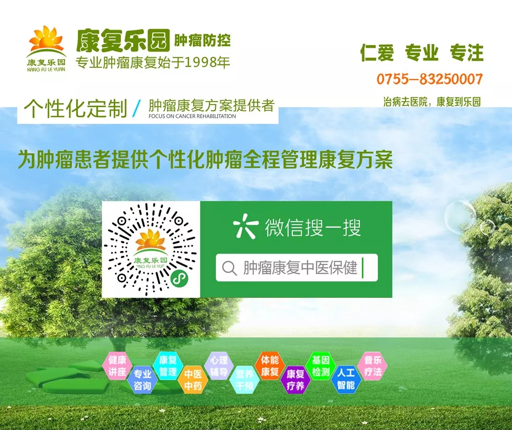其实癌症也并不是很可怕,要得到科学的治疗与合理有效的康复,带瘤生存几年,几十年都不是难事,康复乐园自98成立以来,一直致力于肿瘤康复,更肿瘤康复资讯,请关注“康复乐园”公众号平台了解。