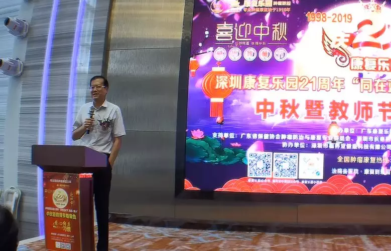 ● 这陆志宏理事长致词总结经典的八个字,他说,21年以来,感恩每一个会员朋友对21年来对康复乐园的信任与支技,也感谢各位专家教授一直以来对康复乐园的认可与支持,同时也感谢我们团队的付出. 我们,不管是会员,专家,团队成员,我们都在抗癌的同一战线上,为了同一个目的我们要同心同德,用心云战胜癌魔! 在这一条抗癌的战线上我们一定要坚持下去,康复乐园经过了21年的洗礼,由当时的13名会员,现已达到会员二万多名!希望有更多的抗癌斗加入到康复乐园这个大家用中来。 付出了总会有回报,经过二十多康复经验的积累,康复乐园癌症五年生存率已达到了70%以上,这是可喜可贺的。我们的最终目标是达到共赢,让会员朋友们快乐成功康复,抗癌路上你我同赢。 教师节快乐 ▲▲▲ 专家合影 ● 联谊活动深圳康复乐园邀请了各大医院的专家亲临现场和我们一起过节,他们救治危难、给康复乐园的会员提供了绿色就医通道,使大家在康复路上找对医院找对医生提供了有力的臂膀。 而且这些专家都是深圳知名医院专家教授。他们是: 特邀专家介绍 1、 深圳市抗癌协会理事长、南方医科大学深圳医院肿瘤科主任 申维玺 教授 2、 深圳市第二人民医院原副院长 王成友教授 3、 深圳市健康管理协会前会长 韩全水 4、 深圳市人民医院肿瘤科 陈亦欣书记 5、 深圳市人民医院甲乳外科 周冬仙主任 6、 深圳市人民医院原肿瘤科 刘玉梅主任 7、 深圳市人民医院介入科 张彦舫主任 8、 深圳市人民医院放疗科 李先明主任 9、 北京大学深圳医院肿瘤科 王树滨主任 10、北京大学深圳医院放疗科 刘雅洁主任 11、 深圳市第二人民医院肿瘤科 周泽强主任 12、 深圳市第二人民医院中医治未病 邓旭光主任 13、 深圳市中医院肿瘤科 杨振江主任 14、 深圳市保健科技学会 梁凯林秘书长 15、 广东省保健协会肿瘤防治与康复专业委员会副主委陆志宏先生 ▼▼▼ ▲▲▲ ● 活动现场特邀深圳市抗癌协会理事长申维玺 教授进行了讲话,他说对于癌症患者来说,其实我们是战友,我们同处在抗癌的战场 ,与癌对抗.同时他也高度评价了康复乐园,陆理事长带领他的团队在肿瘤康复的这条路坚持了二十多年,这非常的不易,也希望康复乐园在以后的路上越做越好,去帮助更多的人。 教师会员颁奖及抗癌经验分享 ▼▼▼ ▲▲▲康复乐园祝福老师们,节日快乐,您辛苦了!