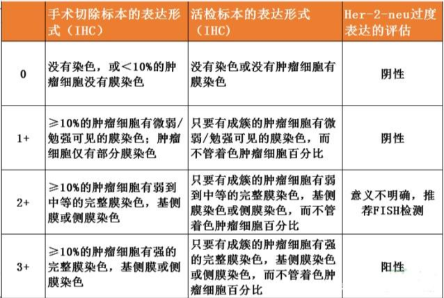 曲妥珠单抗在胃癌的治疗成果——当前胃癌中唯一有效的HER2抑制剂 1 一线治疗:疗效良好 2010年TOGA研究结果的公布开启胃癌靶向治疗时代,也奠定曲妥珠单抗在HER2阳性晚期胃癌一线治疗中的地位。 与标准化疗(顺铂+氟尿嘧啶)比较,曲妥珠单抗联合化疗可使总生存期(OS)延长(13.8个月vs11.2个月,P=0.0046),晚期胃癌的OS也首次突破1年。 曲妥珠单抗在一线化疗中的联合使用不仅与顺铂+氟尿嘧啶方案疗效良好,多项研究显示曲妥珠单抗与卡培他滨+奥沙利铂、多西他赛+替吉奥(S-1)、多西他赛+奥沙利铂+5-FU或顺铂+S-1等联用也能获得与TOGA研究相似的总生存期OS。这些研究结果表明患者在一线化疗中可以有更多联合化疗方案可供选择。 2 跨线治疗:获益疗效需再研究 鉴于曲妥珠单抗在一线治疗中取得良好疗效,且又是当前胃癌中唯一有效的HER2抑制剂,为充分发挥其疗效,国内外学者进行曲妥珠单抗跨线应用的探索。 复旦大学附属中山医院的前瞻性研究探索一线应用曲妥珠单抗治疗进展后,二线更换化疗方案并继续联合曲妥珠单抗的治疗模式。 与单纯二线化疗比较,继续联合曲妥珠单抗可使无进展生存期(PFS)延长(3.1个月vs2.0个月,P=0.008),提示曲妥珠单抗跨线应用似有潜在获益。 然而,该结果并未在后续研究中得到印证。2018年ASCO会议报告Ⅱ期WJOG7112G(T-ACT)研究结果,入组91例铂类和氟尿嘧啶类联合曲妥珠单抗治疗进展的患者,二线随机接受紫杉醇联合曲妥珠单抗对比紫杉醇单药治疗,两组PFS及OS比较差异均无统计学意义(PFS:3.68个月vs3.19个月,P=0.33;OS:10.2个月vs9.95个月,P=0.20)。 后续探索性研究发现,约69%的患者在一线治疗进展后HER2扩增缺失,可能是导致曲妥珠单抗跨线治疗失败的主要原因。 这个结果表明曲妥珠单抗不是“万能”的,在跨线治疗中具体如何让患者获益还需再研究。 好消息是我们明白进展后再次明确HER2状态是筛选跨线治疗潜在获益人群的前提,这为后续研究提供了方向。 3 维持及围手术期治疗:或可成为良好的新辅助治疗模式 曲妥珠单抗在胃癌治疗的其他领域,如维持及围手术期中的探索也紧随其后。回顾性研究结果显示,一线应用曲妥珠单抗联合化疗后,曲妥珠单抗单药维持治疗耐受性良好,中位OS可达16.4个月。 多中心Ⅱ期临床研究HERFLOT评价曲妥珠单抗在局部进展期胃癌围手术期治疗中的疗效和安全性,结果提示,术前4个周期曲妥珠单抗联合DOF方案(多西他赛+奥沙利铂+氟尿嘧啶)的病理完全缓解率可达20%以上,可能成为一种前景良好的新辅助治疗模式。 目前关于曲妥珠单抗在更多领域的研究均在进行中,这些研究结果的逐一揭晓,将为胃癌抗HER2治疗的全程管理提供更多理论依据。 已经检测为HER2阴性还有希望吗? 胃癌HER2检测指南(2016)建议所有诊断证实为胃癌的病例均有必要进行HER2检测;对于新辅助治疗后的病灶以及复发或转移病灶,如能获得足够标本,建议重新进行HER2检测。 Park等研究结果显示,183例初次胃镜活检样本诊断为胃癌且HER2为阴性的患者,接受一次治疗后不能切除或复发者再行胃镜活检并评估HER2状态,HER2阳性率为8.7%;另外175例胃癌原发灶HER2阴性的胃癌患者,其复发或转移灶的HER2阳性率为5.7%。研究还发现,再检测后HER2为阳性的患者从化疗联合曲妥珠单抗的治疗中获益程度与初次检测HER2阳性的患者相似。 胃癌HER2检测方法及流程 胃癌HER2检测方法:免疫组化法(IHC)或荧光原位杂交法(FISH)进行肿瘤Her-2-neu过度表达评价。 胃癌HER2检测流程: 胃癌HER2免疫组化评分标准: