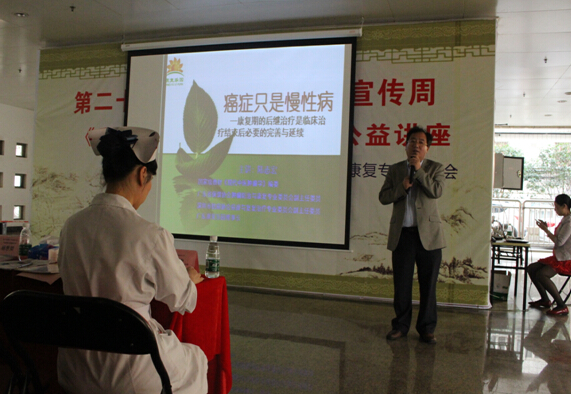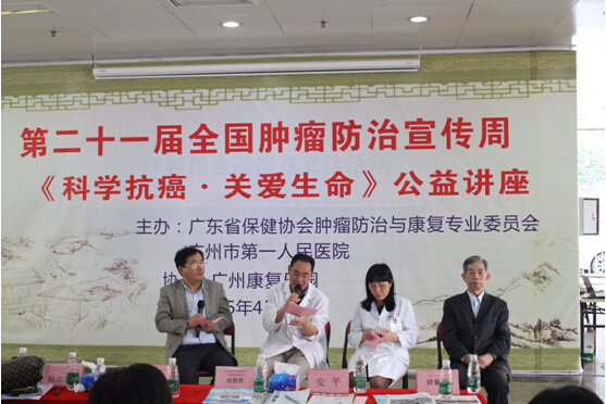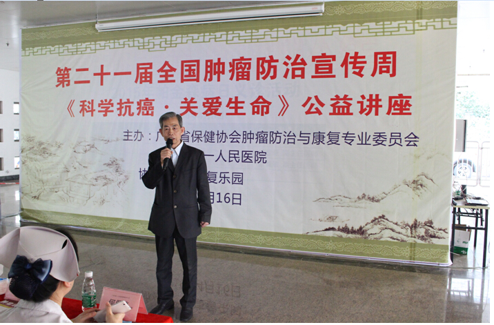 每年4月15日-21日是全国肿瘤防治宣传周,为提高全民防治肿瘤的科普知识,增强民众的健康水平,由广东省保健协会肿瘤防治与康复专业委员会主办、广州康复乐园协办的《科学抗癌 关爱生命》公益活动,于4月16日下午3:00点在广州市第一人民医院内科楼1楼大堂举行。 此次讲座在康复乐园抗癌明星合唱的康复乐园会歌《困难怕什么》中拉开了序幕。现场邀请了广州市第一人民医院肿瘤科主任,广东放疗学会委员,广州肿瘤学会副主任委员,广州抗癌协会热疗与消融治疗专业委员会主任委员刘国龙教授讲《肿瘤综合治疗及如何有效防范复发转移》和广东省保健协会肿瘤防治与康复专业委员会副主任委员、广东省肿瘤康复学会副会长、深圳市保健科技学会肿瘤康复专业委员会副主任委员、深圳市抗癌协会理事、康复乐园陆志宏理事长讲《肿瘤患者出院后怎么办?—肿瘤康复体系介绍》专题讲座。 ![]()