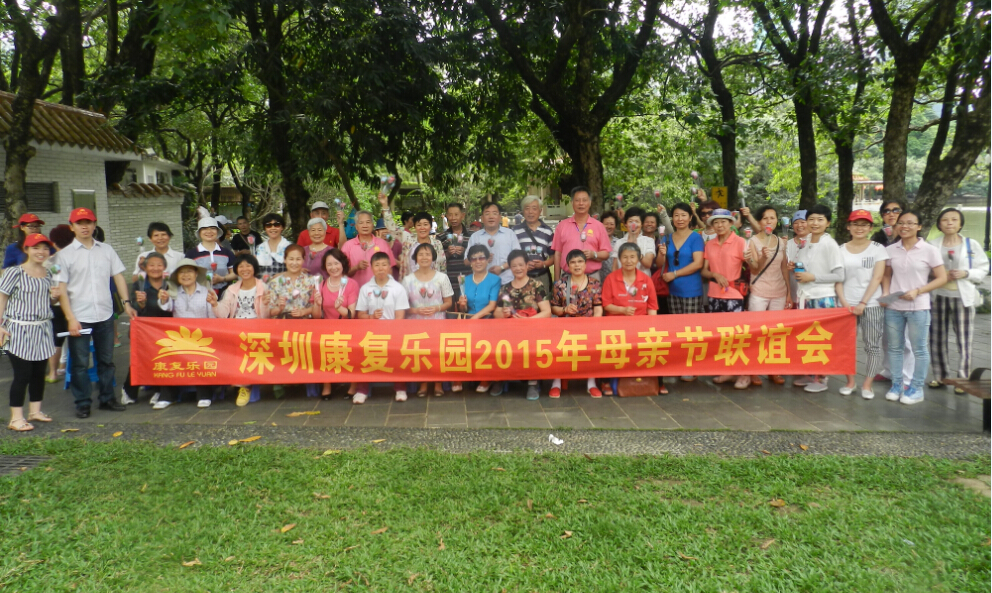 总有一个人,默默将我们支撑;总有一种爱,让我们泪流满面。这个人就是母亲,这种爱就是母爱。母爱是无私的奉献,母爱是无限的牵挂,母爱是和煦的春风,母爱是温暖的阳光。岁月匆匆,母爱浓浓。在2015年母亲节到来之际,由深圳市康复乐园举办的母亲节联谊会暨乳腺病种经验交流会于今天上午在荔枝公园成功举行。 今天上午9时,康复乐园员工早早来到现场,和现场每一位新老会员聊天,问她们最近的身体情况,康复乐园艺术团徐阿姨带着大家先跳起了广场舞,活跃了现场的气氛。康复乐园理事长陆志宏先生和义工们把精心制作的每一朵鲜花,带着天下儿女对母亲的感恩,像爱的使者一样,把节日最美好的祝福送给这些伟大的母亲们!