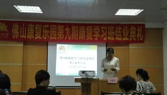 全体人员唱响康复乐园会歌《困难怕什么》 在结业典礼上,首先全体学员一起唱响了康复乐园会歌《困难怕什么》,接下来由广州康复乐园荣誉会长杨恩荣先生致辞。