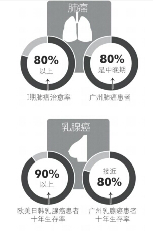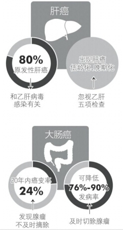 抗癌防癌关键:把握“窗口期” 从早期病变到癌发会经历15-40年;及时发现,带癌生存期将得到延长 数千年来,无论是以经验医学为代表的中医,还是以询证医学为代表的西医,一直都在尝试着攻克癌症这一沉疴痼疾。 “目前最为成熟的癌症模型——— 大肠癌模型提示我们,从早期的癌前病变到最后的实体癌发生,一般会经历15-40年的过程。如果能准确地把握好这一时间窗口,癌症,尤其是晚期癌症的发生率将大大降低,人类的带癌生存期将得到延长。”南方医科大学肿瘤研究所专家告诉记者。 肺癌:发现得早比糖尿病还容易治 广州医科大学附属第一医院院长、肺癌治疗专家何健行表示,癌症包括肺癌的发生首先是环境、基因、遗传外加年龄等因素叠加而形成疾病,与此同时,目前很多人没有意识到癌症是可预防、可治愈的。 一方面,I期肺癌的治愈率可以高达80%以上;另一方面,广州地区的肺癌患者中80%是中晚期。“这两个80%值得市民和医学界注意。”何健行认为,从某种程度上来说,不少早期癌症比糖尿病、高血压还要容易治疗,但关键是要早发现。遗憾的是,由于缺乏必要的肿瘤筛查,很多肿瘤患者一发现就已经是中晚期。 这需要市民一方面注重身体检查,定期体检;一方面也需要政府、卫生主管部门能够制定出对应的公共卫生政策,开展癌症筛查。据悉,目前全国范围内,上海在肺癌筛查方面走在前列。 何健行团队研究发现,对于亚洲人而言,肺癌患者中将近一半是不吸烟的,这部分患者更多的是由于基因变异所致。因此,不乏30多岁发病的患者,最小的患者甚至只有14岁。因此在我国,不仅是传统的高危人群才需要进行肺癌筛查。从45岁开始,不管是否吸烟,将肺癌筛查列入每年的常规体检是一个比较合理的选择。 乳腺癌:广州患者十年生存率近80% 广州市妇女儿童医疗中心乳腺外科主任马宏民表示,欧美日韩等国的统计数据显示,由于医学技术较为先进,注重乳腺癌的早期发现和筛查,同时治疗手段上有其独到之处,在上述国家,乳腺癌(整体、不分期)的十年生存率达90%以上。在广州,乳腺癌患者的十年生存率也能接近80%。 “一般而言,恶性肿瘤越早发现,其治疗效果越佳,但对于乳腺癌,肿瘤的发现是否早期,不能作为其预后效果的完全依据”。著名乳腺肿瘤专家、中山大学孙逸仙纪念医院副院长宋尔卫表示,乳腺癌总体而言其死亡率较低,但乳腺癌发现时的分期(早中晚期),并不能代表预后效果。早期乳腺癌,也存在着远端转移、复发的可能性。 宋尔卫、马宏民两位乳腺肿瘤专家表示,乳腺癌的发生是一个综合因素促成的结果。有遗传方面的因素,其次就是环境饮食因素,目前我国进入到高蛋白、高脂肪饮食阶段,这类饮食习惯也被证实为乳腺癌高发因素。婚育年龄的延后,女性本身的内分泌激素变化,也被证明和乳腺癌发生有正相关性。 宋尔卫表示,目前研究结果表明,只有通过激素类药物,才能降低乳腺癌发病率,但药本身也有副作用。“科学、低蛋白饮食能降低风险,但无法预防。” 肝癌:乙肝五项检查不能矫枉过正 目前人们对于肝癌的预防举措正陷入到一个怪圈当中。由于需要保护患者隐私,乙肝五项检查已经在入职、常规体检中被叫停。而越来越多的年轻乙肝患者,由于忽视了自己的乙肝五项检查和肝功能检查,却日益表现出肝癌的低龄化、晚期化。 广州军区广州总医院肝胆外科主任霍枫教授表示,根据现有资料显示,大约有80%的原发性肝癌和乙肝病毒感染有关。在他看来,对于乙肝患者的隐私保护是必须的,但同时该问题不能矫枉过正。已经明确是乙肝患者的人群,还是必须动态监测好自己的肝功能,发现乙肝病毒的复制情况。“和众多癌症一样,肝癌的早期治愈率要比晚期高得多,也好治得多。”而肝癌的窗口期把握,关键还是要做好早期病变的发现,及早进行手术干预。 在众多肝病专家看来,继续强化乙肝免疫推进工作,也能大大减少乙肝新发患者的数量。“从长远来看,这项工作还需继续推进,不断提高乙肝疫苗的免疫有效率。” 大肠癌:目前正在启动早期筛查工作 结肠、大肠和直肠癌统称为“肠癌”,目前是世界死因顺位中位列第3的癌症,近期不断高发,尤其是在广州这样的精细饮食城市,发病率越发增高。尽管肠癌的治疗手段也已进入到基因靶向药物治疗阶段,但多年来晚期肠癌的5年生存率并没多大改观。从这一点来说,肠癌的预防意义比治疗意义更大。 广东省抗癌协会癌症康复与姑息治疗专业委员会副主委、广州市中医院肿瘤科主任张华表示,肠癌作为一种现代癌、富贵癌,与现代生活方式和饮食类型直接相关。 肥胖,高脂饮食、肉类饮食都是肠癌的高危因素。这一疾病的预防关键,依然是早防早治。发现肠腺瘤不及时摘除5年内的癌变率4%,10年内的癌变率就高达14%,20年就可以高达24%。腺瘤发展为大肠癌平均需7-15年,为大肠癌的发现和治疗提供了机会。大量研究显示,通过大肠癌筛查,将可能转化为肠癌的腺瘤切除,可降低大肠癌76%-90%的发病率。 从2011年开始,广州越秀区开始进行肠癌预防筛查工作,累计为6.5万名居民免费提供大肠癌筛查服务。共发现大肠癌高危对象5321人,其中有2818人接受肠镜检查,有约30%发现病变,发现后绝大多数居民得到了及时治疗,取得了良好效果。而从2015年开始,广州市在全市范围内针对65-74岁年龄组居民开展免费筛查。今