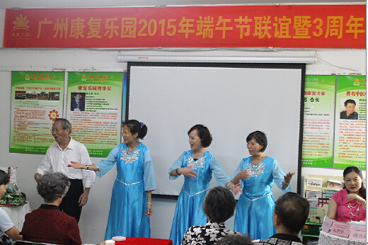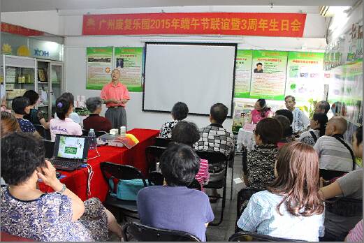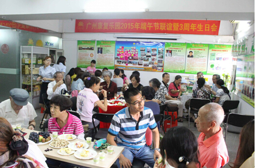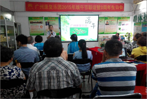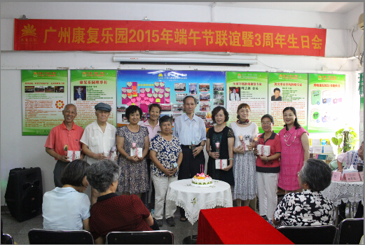 6月13日上午,广州康复乐园成功举办了端午联谊暨三周年生日会活动,此次活动各30多位新老患友参加。 广东红十字会原秘书长、广州康复乐园荣誉会长杨恩荣,广州康复乐园副会长潘光福以及从事肿瘤康复事业十余年的广州康复乐园何主任参加了本次活动。本次活动内容丰富,夏季养生知识的普及,抗癌明星成功康复的分享,还组织了由会员表演的形式多样的娱乐节目,三周年生日会的庆祝等,让大家不仅感受到中国浓厚的传统节日气氛,还从活动和病友的交流中学习了抗癌和康复的知识,收获多多。
