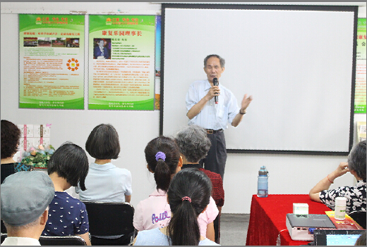 广东红十字会原秘书长广州康复乐园荣誉会长杨恩荣致辞 我们康复乐园会员多才多艺。康复乐园合唱团的队员声情并茂演唱了《好人就在身边》,拉开了今天活动的序幕。邝老师,抗癌19年,深情献唱了《雁归来》,舒缓细腻的歌声让我们久久不能忘怀。有我们50期康复学习班学员杨杰演唱的《常回家看看》,熟悉温馨的旋律把活动气氛带进到了高潮。接着康复乐园的陵园片区代表李永南自编自导了一段顺口溜《建友赞花香》,内容诚恳动人,治病到医院,康复到乐园,让爱心传递成为一种习惯,群体抗癌,走成功者之路,在他的顺口溜中得到了很好的体现。
