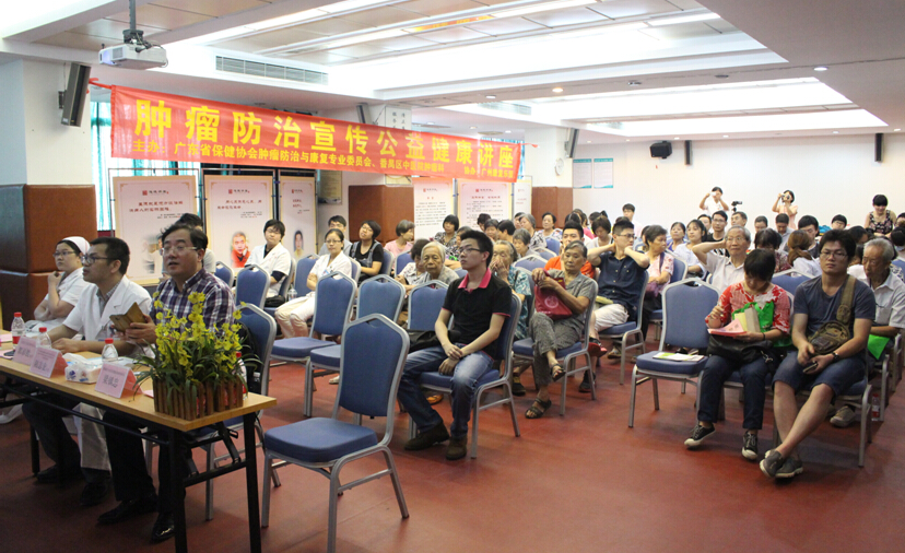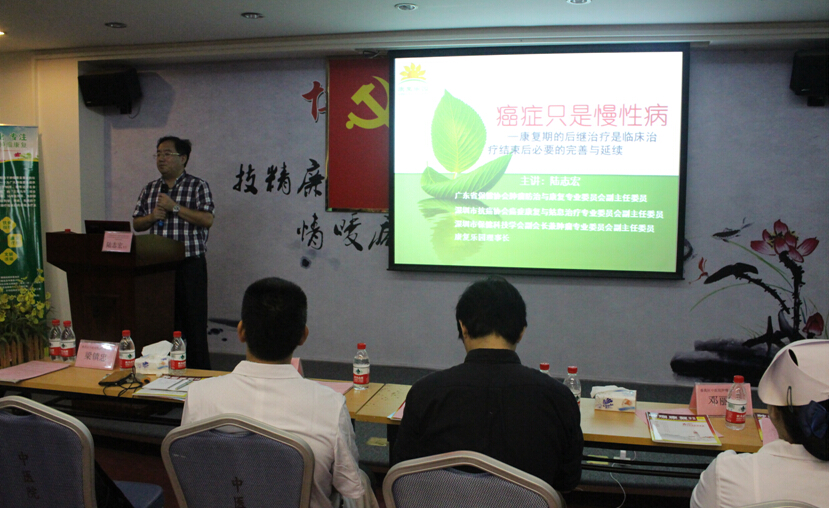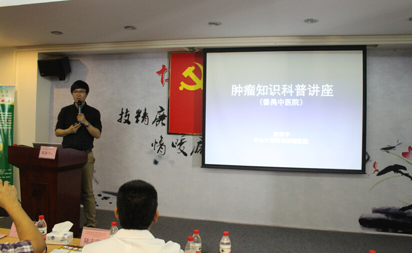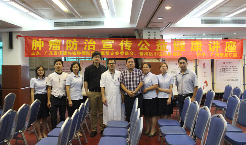 为提高全民防治肿瘤的科普知识,增强民众的健康水平,由广东省保健协会肿瘤防治与康复专业委员会主办、广州康复乐园协办的番禺区中医院公益活动,于6月17日下午2:30-5:00在番禺区中医院东院门诊大楼301举行。 此次讲座在康复乐园抗癌明星合唱的康复乐园会歌《困难怕什么》中拉开了序幕。 番禺地区现场邀请了番禺区中医院预防保健科科长梁镇忠致辞,番禺区中医院肿瘤内科主任郭添胜讲话及讲《我们为什么会得肿瘤?怎么治疗?》,中山大学附属肿瘤医院肿瘤内科蔡修宇博士讲《NCCN肿瘤患者生存指南》专题讲座和广东省保健协会肿瘤防治与康复专业委员会副主任委员、广东省肿瘤康复学会副会长、深圳市保健科技学会肿瘤康复专业委员会副主任委员、深圳市抗癌协会理事、康复乐园陆志宏理事长讲《肿瘤患者出院后怎么办?—肿瘤康复体系介绍》专题讲座。