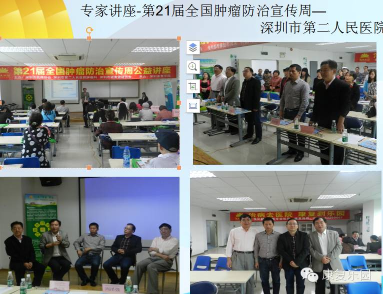 2015年以来与深圳各大医院共同举办了十多场大型讲座,深受广大肿瘤患者的厚爱,因为康复乐园所做的正是他们渴望的.